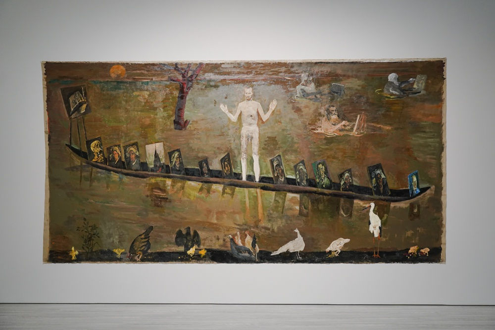 《小舟 02》,此幅畫作中呈現了梵谷渡冥河的意象,其大腿上刻著拉丁諺語「現在的喜樂來自過往的悲苦」,展示著梵谷生時不得至,死後才得名的一生。(Photo CreditMOT TIMESPhotographyKura Yang