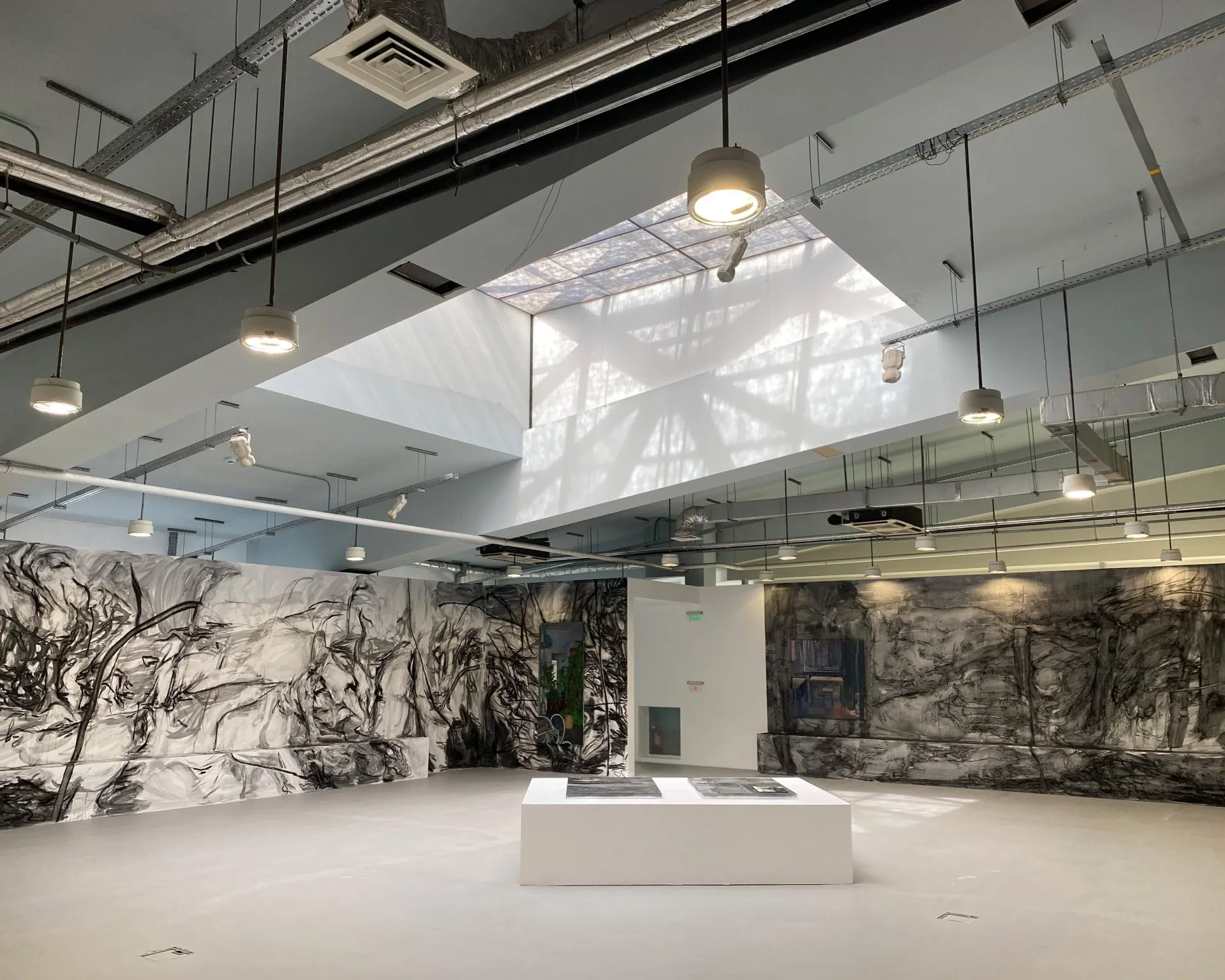 Right after seeing the exhibition at MNAC I wanted to go to the Institute of the Present’s space to her ​​​​engaging activities, … Back to All NightCrawler installation. Last year, I wrote about the installation Ana Maria Micu exhibited at Romanian Creative Week, which consisted of a painting, a drawing made using black vinyl cuttings and an animation, which was one the highlights of my year. When I saw there is once again a drawing on-site made using the same technique, an animation and a charcoal drawing on canvas, I couldn’t wait to visit the space.